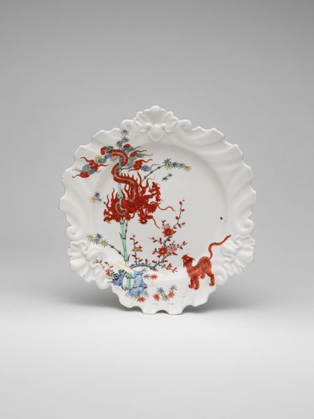 This plate, made around 1760 at the Chelsea Porcelain Manufactory, features a Japanese Kakiemon-inspired scene with a twisted dragon. Porcelain is a uniquely challenging material. It demands high-temperature firing and precise control of the kiln atmosphere. Achieving this level of expertise was a major goal for European manufacturers in the 18th century, as they sought to emulate the coveted porcelains of East Asia. The decoration on this plate is particularly interesting. It shows a direct engagement with Japanese aesthetics, filtered through a European sensibility. The dragon, rendered in iron-red pigment, climbs a bamboo stalk, while stylized flowers and a playful lion-dog complete the composition. The twisted, molded rim of the plate adds another layer of artifice. This plate represents the global exchange of materials and ideas, but also the intense competition and labor involved in porcelain production during the 18th century. It reminds us that even seemingly delicate objects can be powerful documents of social and economic history.