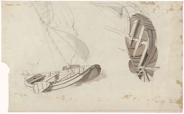 Willem van de Velde the Elder made this drawing of the bow of what is thought to be an English ship, the Elizabeth, using graphite on paper. The drawing's delicate lines capture the elaborate ornamentation of the ship's prow, a testament to the resources and skilled labor invested in maritime power during this era. Van de Velde was celebrated for his ship portraits, and the detailed rendering here reflects both an artistic sensibility and a technical understanding of shipbuilding. The image speaks volumes about the relationship between maritime trade, naval strength, and artistic representation in the 17th century. While it is a work on paper, don't be fooled, this isn't just a drawing, it is about the economic realities of maritime power and colonial ambitions. The artist's focus on the ship's ornate details elevates it beyond a mere vessel, revealing the intertwined histories of craft, commerce, and conflict.