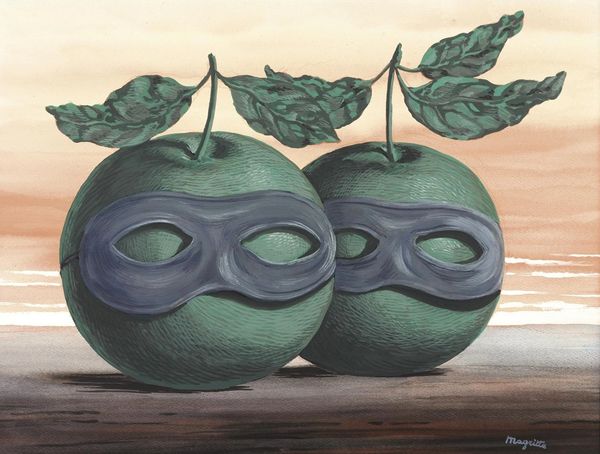 René Magritte painted L’IDÉE using oil on canvas, a traditional fine art medium lending itself to the painting's smooth surfaces. At first glance, this is a painting of a businessman with a green apple where his head should be, but it is also a painting *about* painting. The apple has been rendered with careful attention to the way light plays across its surface, making it seem three-dimensional. In contrast, the suit appears flat, and the tie is a solid block of pink, without shadows or highlights. Magritte’s focus on the interplay of illusion and reality is a recurring theme in his work, achieved through the skilled application of paint. The precision of the oil paint and the flat rendering style seem to mimic the world of commerce and industry. It is as though Magritte is making a point about the way that capitalism can flatten human experience. The painting prompts us to consider the amount of labor involved in producing commodities, including art. Magritte challenges our assumptions about the relationship between art and life, inviting us to question what we see and how we see it.