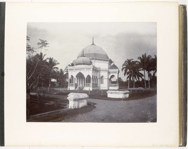 Captain R. B. Hill's photograph captures the Temple at Allipore, presenting us with a potent array of symbols and cultural echoes. Dominating the structure are the temple's domes, each a beacon pointing to the heavens, reminiscent of ancient stupas and reliquaries that house sacred relics. The palm tree is the tree of life, an emblem that transcends cultures, linking Mesopotamian art with the frescoes of the Italian Renaissance. Its upright stance echoes the striving for enlightenment, a motif present in the Egyptian obelisks and the Gothic spires that pierce the sky. Consider how such forms resonate deeply within our collective memory, a subconscious yearning for connection with the divine. It's a potent symbol of humanity's eternal quest for meaning, echoing through time.