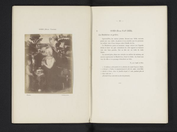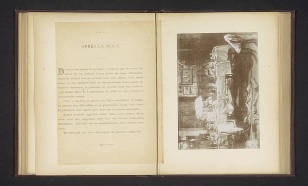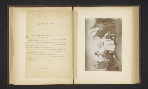 This is a photographic reproduction of a painting by Willem Linnig II, made by Alexandre van Antro. The image is quite small, only 113 by 161 mm. We can see the texture of the photographic paper, its color now aged to a warm sepia tone. Photography, though seemingly objective, is always a made thing. It’s a process with close ties to the rise of industrial capitalism. Think of the labor that went into its making; the harvesting of silver, the manufacturing of glass for the camera lens, the production of paper. And of course, the photographer’s own effort in carefully preparing chemicals, printing the image, and mounting it in this book. The choice of subject matter is also telling. The original painting depicts a scene inspired by the work of Rabelais, a writer known for his bawdy, satirical tales of feasting and revelry. Perhaps the photograph was intended to capture the same spirit of abundance, but seen through the lens of a more modern, industrial age. Considering the materials and the making process, we begin to understand the wider social and cultural significance of the work. It bridges fine art and industry, inviting us to consider the relationship between labor, consumption, and artistic representation.