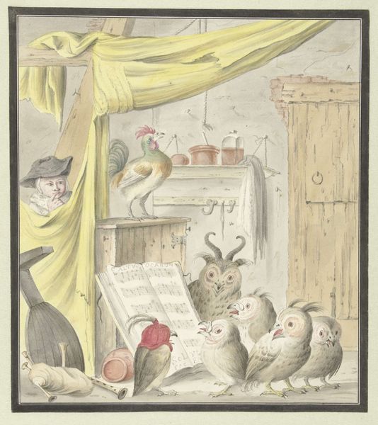 Thomas Rowlandson created this print, "First and Second Floor," using etching and aquatint, processes which rely on acid to bite into a metal plate. The subtle gradations of tone, which give the image such depth, were achieved through careful manipulation of the plate during the aquatint process. Look closely, and you'll notice how Rowlandson used line and tone to differentiate between the women on the two floors. On the second floor, we see two younger working-class women. The looseness of the etching here gives a sense of their unrefined energy. By contrast, on the first floor, the two fashionable women appear in more detailed, delicate lines, emphasizing their status. The print medium itself speaks to social context, being well suited to satire distributed to a wide audience. Rowlandson critiques social hierarchies, contrasting the lives of these women. He captures a moment in time, where fashion, class, and the very process of printmaking intersect. Understanding the materials and processes behind this work allows us to see it not just as an image, but as a social commentary embedded in its own making.