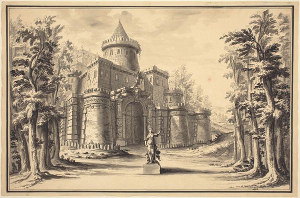 Editor: This is "Topiary Archway," a graphite drawing created around 1910 by F. L. Griggs. There's something about the textures in this drawing that I find compelling; they give the scene a haunting, almost dreamlike quality. What do you see in it? Curator: Oh, it’s like stepping into a memory, isn't it? The graphite has this uncanny way of turning a static scene into a place teeming with untold stories. It almost vibrates, doesn’t it? Look how Griggs captured the architecture beyond the arch; notice how they hint at an ideal world, viewed through nature. And isn’t that exactly what the Arts and Crafts movement was striving for, I wonder? Does it remind you of walking through your grandparent's garden and coming across that forgotten grotto you remember discovering when you were much younger? Editor: It does. But, you know, the more I look, the more it feels like a stage set rather than a real place. Those meticulously trimmed hedges almost seem too perfect. Curator: Ah, but that's the delightful tension, I think. We’re meant to feel that little tug of artifice versus reality, aren’t we? Those perfect topiaries… a perfect imperfection, hinting that utopia itself requires work. Perhaps nature untamed would just lead to disorder? Or maybe I'm reading too much into some graphite on paper. Editor: No, I see it now. It's less about representing a literal place and more about capturing an atmosphere. What kind of mindset do you think Griggs had? Curator: A good question. Griggs was deeply inspired by medieval romanticism... A little yearning, perhaps? Editor: That definitely adds a layer I hadn’t considered. Now I see both the craftsmanship and the wistful gaze. Thanks for pointing that out. Curator: The pleasure’s all mine. It is like remembering to stop and look closer and maybe you can glimpse something old anew.