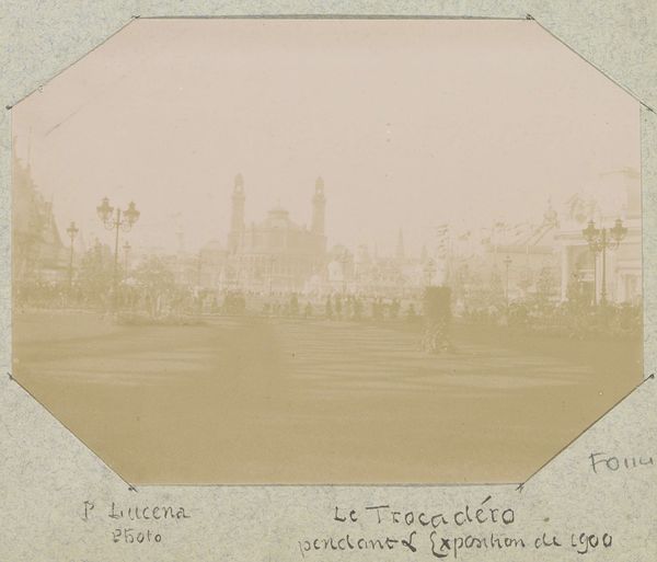 Paul Lucena made this photograph of the Palais du Trocadéro and its surroundings from the Eiffel Tower during the 1900 World Exhibition in Paris. This image offers us a glimpse into the spectacle of the World Exhibition, a phenomenon that celebrated industrial progress and colonial power at the turn of the century. From the dizzying height of the Eiffel Tower, the photograph captures the sprawling cityscape transformed into a temporary world of pavilions and displays. Consider the act of photographing from the Eiffel Tower itself. It was a new vantage point made possible by technological advancement, and offered a panoramic view that embodied the ambition of the era. The Palais du Trocadéro, prominently featured, served as a symbol of French architectural prowess, while the exhibition itself was a carefully curated display of global cultures and technological achievements, all under the gaze of the host nation. By exploring archives of photographs and ephemera from the exhibition, we can better understand the social and political context that shaped not only the event but the very act of seeing and representing the world at the time.