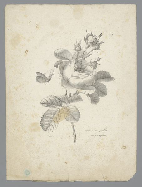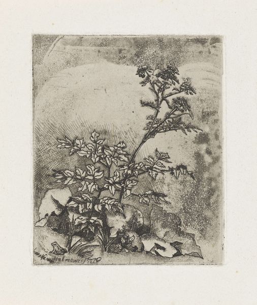 J. Porteret created this drawing, "Bloemen met een lint samengebonden," or "Flowers tied with a ribbon," using graphite and possibly gray wash on paper. Arrangements like this one became highly popular as models for artisans. A bouquet of flowers tied together with a ribbon: it’s a visual shorthand for luxury, taste, and the bounty of nature tamed for the delight of the cultivated classes. This drawing would likely have been intended for use in the decorative arts; the design could be adapted for textiles, ceramics, or even architectural details. These were products of early modern European society, where the natural world was increasingly viewed through a scientific lens, but also as something to be possessed and displayed as a sign of social status. To fully understand this image, we need to examine the economic history of botanical illustration, the rise of consumer culture, and the social rituals surrounding floral display. It is a task that requires us to look beyond the aesthetic appeal and consider the complex social forces that shaped its creation and reception.