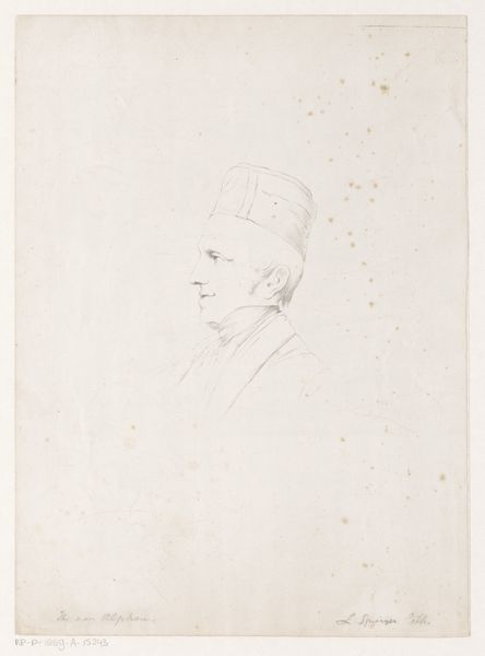Karl Sandhaas created this sketch of a beardless man, now housed in the Städel Museum, using delicate lines on a muted ground. The composition, primarily focused on the subject's head and shoulders, captures a sense of contemplative reserve. The lines, though faint, define the contours of the face, hat, and clothing with precise attention. Consider how Sandhaas uses line to negotiate between presence and absence. The sketch, seemingly unfinished, prompts us to reflect on the nature of representation itself. It operates as a sign, not merely reflecting the world but constructing it through a system of visual codes. The absence of detail invites the viewer to participate in the act of creation, filling in the gaps and completing the image in their mind. The sketch challenges traditional notions of artistic completeness. It questions whether a work of art needs to be fully realized to convey meaning or evoke emotion. By leaving space for interpretation, Sandhaas encourages a dynamic interaction between the artwork and the observer, acknowledging that meaning is not fixed but emerges from the ongoing process of engagement.