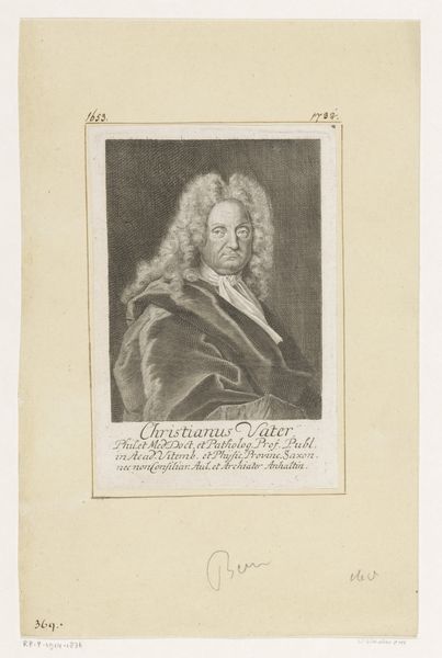 Martin Bernigeroth created this portrait of Johann Heinrich Helcher in the early 18th century through engraving, a printmaking process where lines are incised into a metal plate to hold ink. The material qualities of this artwork lie in its precise, linear details and tonal gradations achieved by the skilled hand of the engraver. Bernigeroth used specialized tools to cut lines into the metal, each varying in depth and width, resulting in the illusion of shadow and form. This process required meticulous planning and dexterity, reflecting a tradition of craftsmanship where technical skill was highly valued. Engraving was essential for disseminating images and information in an age before photography, serving as a crucial medium for portraiture. This artwork reflects the social context of its time, capturing the likeness of an individual and his status. Ultimately, understanding the materials and processes involved in creating this engraving allows us to appreciate the labor, skill, and cultural significance embedded within it, challenging any separation between craft and fine art.