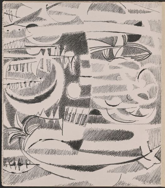 Roberto Matta made this surrealist landscape, "Dark Light," with pastel and pencil on paper. Matta worked quickly, layering marks, blending, and hatching lines. The dry media allowed for expressive freedom and spontaneity. The pastels give the image a soft, dreamlike quality, while the pencil adds precision to the architectural and organic forms. It’s a study in contrasts, this combination of looseness and control. The paper itself is crucial, providing a receptive ground for the artist's hand. The subtle tooth of the paper interacts with the pastel, creating texture and depth. This emphasis on process and materiality challenges traditional hierarchies, elevating the status of drawing and craft. It makes you think about how much work is involved in a "quick" sketch. By attending to the materials and making of "Dark Light," we can appreciate Matta's innovative approach, breaking down barriers between art and craft.