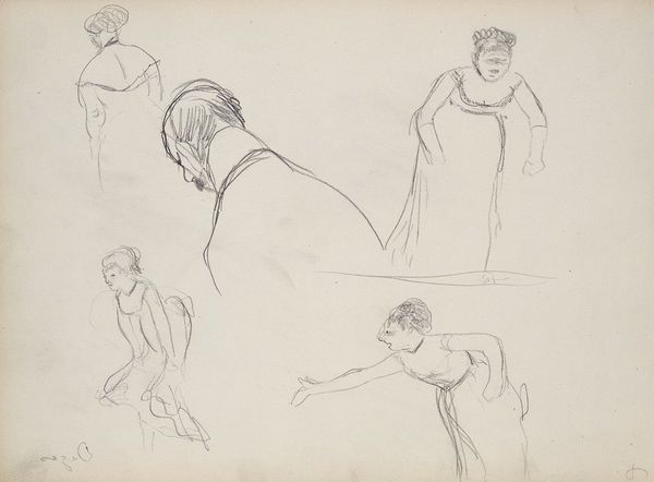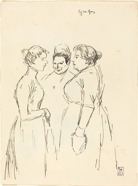 Théophile Alexandre Steinlen made this series of sketches, Six Croquis de Personnages, using ink. Steinlen's artwork often captured Parisian street life and social issues, particularly during the Belle Époque. Here, we see six figures who may come from different social backgrounds based on what they wear. The women’s outfits differ significantly in style, from simpler dresses to elegant gowns, while the men appear in suits with one wearing a cap that might indicate a worker's status. This reflects the diverse social classes coexisting in Paris at the time. Steinlen was deeply involved in leftist politics. He was interested in the lives of ordinary people. These sketches are particularly poignant. They give us insight into gender and class dynamics of the time, especially in how people presented themselves to the world. Steinlen’s sensitive portrayal humanizes his subjects, inviting viewers to consider their individual stories within a broader socio-political context.