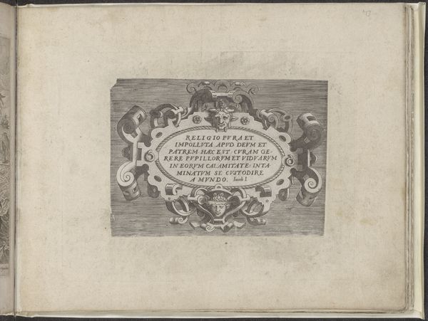Curator: This is the title page by Adriaen Collaert, made around the late 16th or early 17th century. It's an engraving, showcasing intricate detail. Editor: It’s certainly busy! The composition is ornate, bordering on overwhelming, and yet... I find it compelling. The weight of detail is very impressive. Curator: Collaert, from Antwerp, was known for his engravings, often reproducing works by other artists. This piece likely served as a frontispiece for a religious text, given the title. Editor: The frame itself is fascinating—packed with figures and objects. Do you think its construction offers a clue to the piece’s meaning? Curator: Absolutely. The surrounding imagery would have been carefully chosen to complement and expand upon the text’s themes, reflecting the artistic and religious sensibilities of the time. Editor: Thinking about how this was made, I can only imagine the labor that went into this, the resources needed for production, and the culture of craftsmanship that enabled such detail. Curator: Indeed, it gives us a window into the world of the maker and the context surrounding its production and reception. Editor: A stunning work, when you consider the overall composition and the cultural context. Curator: I agree; its material presence speaks to a rich history.