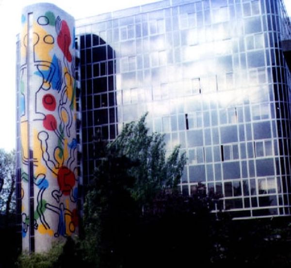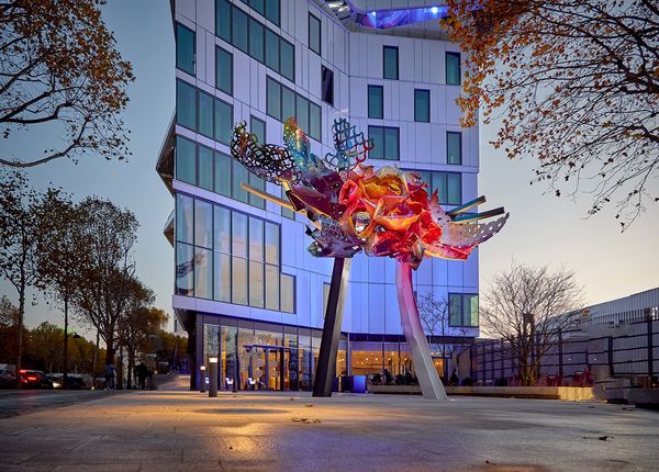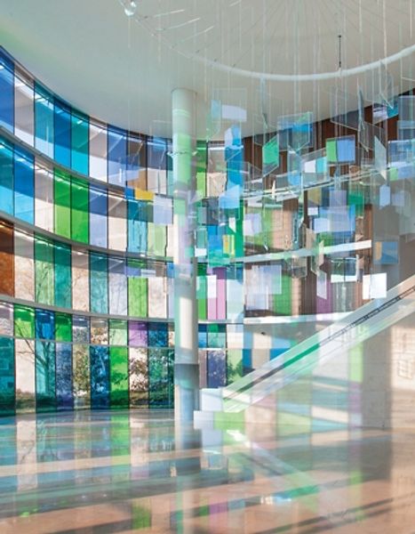 Sarah Morris made "Robert Towne [Los Angeles]" with household gloss paint and varnish in Los Angeles. The flat planes of color are giving me some major art deco vibes. I can imagine Morris carefully plotting each angle, each crisp line, embracing the clean, hard-edged geometry of modern architecture. It is a kind of painting that rejects the messiness of a loaded brush for the cool precision of pre-determined form. It’s all surface, literally! The glossy, reflective surface throws light around, making the space buzz with energy. Look at the interplay of red, green and black. There's a flattening of space with these geometric shapes, but it's a flat, hard, shiny surface. The overall effect is kind of a playful dance between control and spontaneity, where architecture meets abstraction. Thinking about Sarah Morris, I'm reminded of someone like Frank Stella, who also pushed the boundaries of painting into the realm of objecthood. Art isn't about answers, it’s more about opening up questions, right?