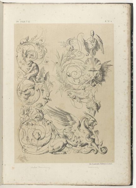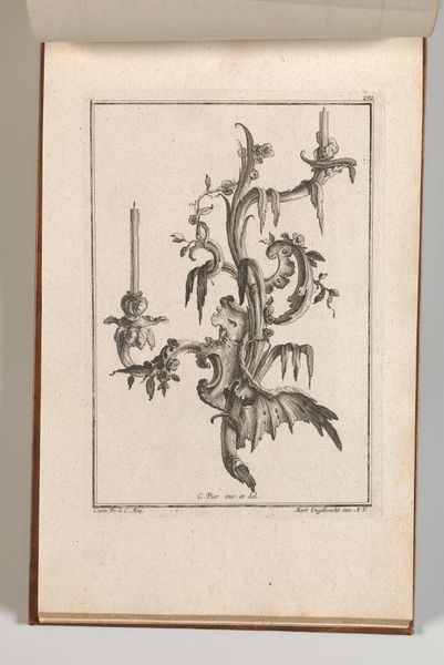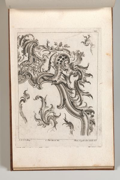 Curator: Here we have "Various Designs for Rocaille Ornaments, Plate 4 from an Untitled Series of Rocaille Ornaments for Frames," a drawing and engraving by Jacob Gottlieb Thelot, created sometime between 1745 and 1755. Editor: My first thought? It's like frozen lightning! All these swirling, elegant forms, promising to transform… whatever they end up on! Curator: Indeed. Observe how Thelot, steeped in the Rococo aesthetic, uses line to evoke movement and organic growth. Each flourish is carefully balanced within a structural framework, reflecting the period's interest in both opulence and order. Editor: There’s something playful, even subversive, about it. Like these ornaments want to escape the frame! You know, morph into bizarre botanical creatures. Are those acanthus leaves, or proto-wings? Curator: That's the Rococo spirit precisely! It blurs boundaries, creating a space for imagination. And from a design standpoint, Thelot provides a valuable resource here, breaking down complex ornamentation into adaptable modules. We see examples of asymmetry that push against established norms, as well as counter-curves. Editor: So, he's giving future artisans a toolkit to prettify the world. But the real trick, I think, is how the details create shadows even within the drawing, deepening the mystery. The darker engravings suggesting mass and heft! Are they heavy? Light? Who knows. Curator: The play of light and shadow—the artist's expert manipulation of chiaroscuro—adds a layer of depth and volume to what is fundamentally a two-dimensional work. It invites tactile interpretation despite its representational nature. The piece is not about reality. Editor: So, more about fantasy and promise, huh? A future vision of fanciness? It kind of makes you smile… Makes you wanna grab a powdered wig and redecorate your garden. Curator: Ultimately, Thelot delivers not just decoration but a visual manifesto—a testament to the power of the Rococo to liberate form and ignite creative possibility. Editor: And, for me? Well, now I understand where some movie villains get their ideas from… the stylish ones, anyway. Good design really can change the world—or, at least, make it a heck of a lot more interesting to look at!