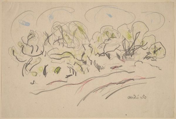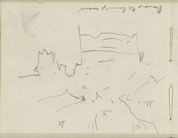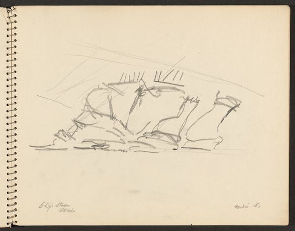 This sketch was made by John Marin, likely around 1950, using graphite on paper. It appears to be a preparatory sketch, or the "verso," of another work, almost like a fleeting idea captured in a notebook. The material itself, graphite, is key here. Marin wasn't after the slick finish of oil paint, or the heavy presence of sculpture. Graphite allows for a direct, almost conversational approach to image-making. See how the lines are tentative, searching, and sometimes even erased. The softness of the graphite allows for subtle gradations in tone, creating a sense of depth and atmosphere. The paper support too is important – it looks like a common drawing pad, the kind you might take on a trip. The sketch is a quick study, a distillation of form, and it invites us to consider the artwork not as a finished object, but as a record of a moment of perception. It reminds us that art-making is a process of thinking through materials, and seeing where they might lead.