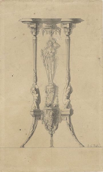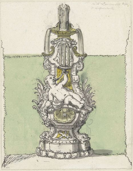 This is a design for a candelabra, likely dating to the 18th or 19th century, rendered in pen and wash. Though it's only a sketch, we can imagine the final object realized in metal – probably cast bronze or silver. Consider the amount of work involved, not just in the making of a drawing like this, but the object itself. Metal casting is a laborious process, requiring not only technical knowledge, but considerable physical effort. And what kind of social relations are embedded here? Candelabras of this kind were luxury goods, intended for the wealthy. Note too the figure holding up the branches – presumably made by a skilled artisan, who would themselves have had a definite social status. This drawing encapsulates a whole series of skills, and social arrangements, necessary for its existence. Seeing this design in all its material and social complexity challenges our typical understanding of fine art.