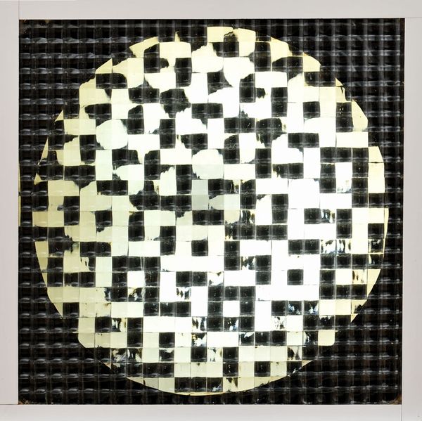 Curator: This work is by Almir Mavignier, titled "Untitled." Editor: Well, that title is certainly… direct! My first thought? It feels like staring into some kind of pixelated abyss. Like an early computer game trying to render the void. Curator: A compelling initial reading. Formally, observe the precise arrangement of white circles against the black ground. Note the shift in scale—the circles diminish in size as they descend below the central, dominant black square. This manipulation of form creates an illusion of depth. Editor: Illusion is the right word! It's static, but my eyes keep moving, like they’re trying to find a vanishing point. That stark contrast—black and white only—gives it real punch. Makes you wonder, what is he trying to conceal inside that square? Secrets? Shadows? My missing car keys? Curator: It resonates with aspects of both Minimalism and Abstract Expressionism. The geometry hints at the Minimalist aesthetic—reduction to essential forms, absence of overt emotional content. But the subjective viewing experience, the shifting perception of space, is closer to Abstract Expressionism's concern with affect. Editor: You’re right, there's definitely a feeling bubbling underneath the surface calm of all those polka dots. Reminds me of being a kid and discovering how much darkness can be hidden in plain sight. It’s playful but unnerving, almost as if the work invites you to step closer...then swallows you whole. Curator: Precisely. The work lacks traditional referents. We must instead address the purely relational aspects of line, shape, and form, the dialectic between positive and negative space. The systematic variation invites close attention to visual processing. Editor: Which, ultimately, brings it back to our own perspective. I love how such a simple setup makes me so aware of *my* seeing. Maybe that square isn't hiding anything but our own projections. Curator: Indeed, the artist invites us to explore how the structure itself creates possibilities of new meanings and perception, each viewer completing the artwork in a unique way. Editor: It’s strange, I come in ready to have a joke about simple form and... actually, this piece makes me think in circles – quite literally, I suppose! Curator: And for me, a work where the closer one looks, the more distant the truth of it may seem, is always a work that holds great significance.
