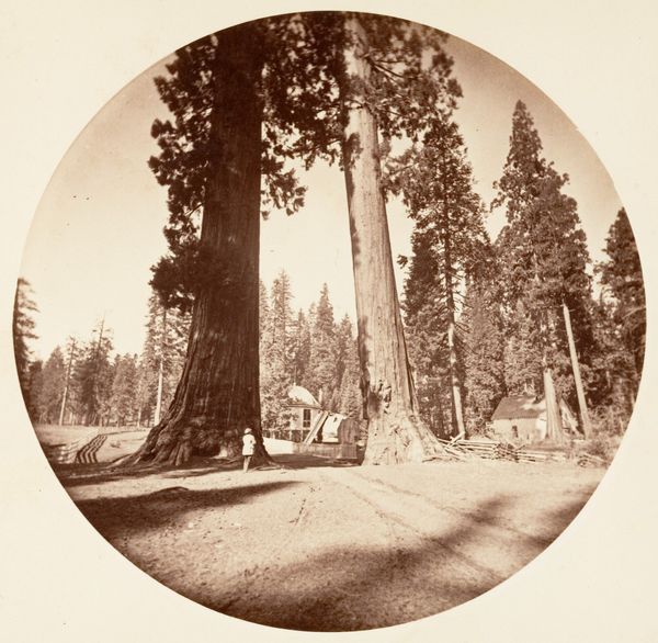 Carleton Watkins made this albumen print, titled 'The Sentinels, C. Grove,' in the late 19th century. Towering sequoias dominate the landscape, silent witnesses to the passage of time, emblems of resilience and longevity. These trees, often called "sentinels," evoke a sense of guardianship and timelessness, symbols deeply rooted in human consciousness. Consider how these arboreal giants echo the ancient Greek concept of the "axis mundi," the world tree connecting the earthly and divine realms. In Norse mythology, Yggdrasil, the immense ash tree, links heaven, earth, and the underworld, embodying cosmic order and continuity. Similarly, these sequoias embody a powerful connection to the earth, resonating with primal memories of nature's grandeur. They stir within us a collective, subconscious recognition of nature's power. This echoes through time, engaging viewers on a profound, emotional level. The sequoia as a sentinel is not merely a static image but part of a dynamic, cyclical progression, resurfacing across cultures and epochs, perpetually renewed with evolving significance.