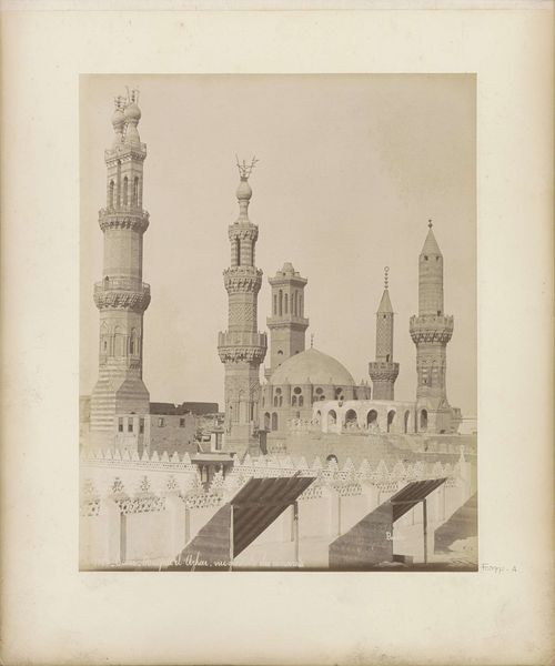 Charles Bernhoeft made this albumen silver print in 1894, capturing the pavilion of E. de Beukelaer & Cie at the Antwerp World Fair. Photography in the 19th century involved a range of chemical processes. The albumen print, popular then, used paper coated with egg white to create a smooth surface for the light-sensitive silver compounds. The result? A detailed, glossy image like the one you see here. Note the pavilion's elaborate, almost fantastical design – an eye-catching building to promote the company's biscuits. This photograph served as an advertisement, one that speaks volumes about the era’s industrial aspirations. Bernhoeft’s composition emphasizes the pavilion's architectural detail, highlighting its construction and hinting at the industrial labor behind the scenes. Understanding the materiality of this photograph – the albumen, the silver, the paper – allows us to appreciate how photography was as much a craft as it was a technological advancement. It underscores the value of photographs like this, showing the close relationship between art, industry, and the visual culture of the time.