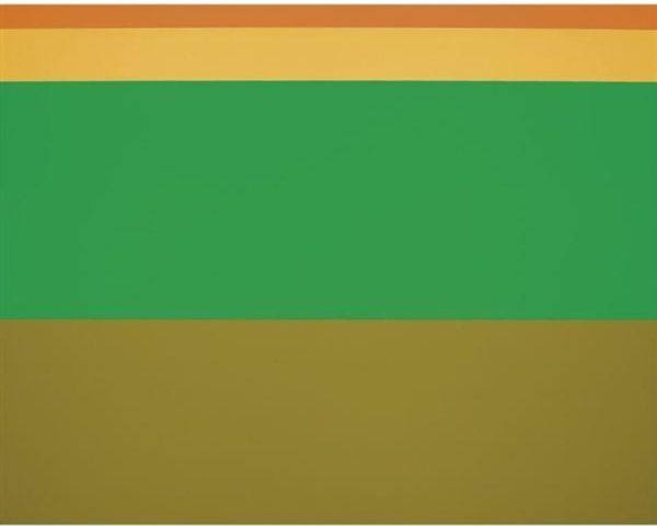 Editor: Here we have Kenneth Noland's "Sound," created around 1966, using acrylic paint. I'm immediately struck by the calmness of the piece. It’s such a simple arrangement of horizontal bands. How do you interpret this work, especially considering the social context of the time? Curator: That tranquility you observe is deceptive. Noland, working amidst the Civil Rights Movement and escalating Vietnam War protests, engaged in hard-edge painting and Colour Field painting. What do you make of the complete absence of a focal point, of recognizable figuration, and, as you put it, its sheer calmness? Editor: It feels almost detached from reality, like a retreat into pure aesthetics. Was this intentional? Curator: In part, yes. Noland and other artists like him explored pure abstraction, seemingly disconnected from the socio-political turbulence. However, consider the minimalist nature, the large scale, and the use of color. Could this also be a silent rebellion against established norms? Do you think that removing all representational elements challenged the viewers and, by extension, the status quo? Editor: That's an interesting thought. Maybe the simplicity itself was a statement, forcing viewers to confront their own perceptions and biases, rather than offering easy answers. Curator: Exactly! It reflects a broader societal questioning of values and priorities. Noland's abstraction pushes against traditional power structures in the art world itself and, arguably, by extension, against rigid social structures too. The cool distance, I think, isn't apathy, but an invitation for critical engagement. Editor: I never would have considered that! I initially saw it as purely formal, but I now see the potential for it being a catalyst for questioning and dialogue. Curator: And that, ultimately, is what art should inspire: dialogue and critical reflection, on both the work and ourselves.