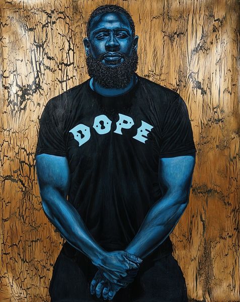 Rah Crawford made this portrait, JIGGA, using what looks like digital illustration techniques, focusing on bold lines and a cool, almost icy, blue palette. It's got that digital crispness, yet there’s a raw energy that reminds me of street art, like Basquiat let loose in Photoshop. Look at how Crawford uses line and text as texture, building up this complex surface. The word "JIGGA" becomes part of the brow, integrating language right into the face. The contrast between the flat areas of solid blue and the intricate linework makes your eye dance all over the place, like you're trying to decipher a hidden code. Notice the splatters too. They’re digital, sure, but they evoke the unpredictable nature of paint, the happy accidents. This piece reminds me of Emory Douglas' work for the Black Panther Party. Both artists use graphic imagery to make powerful statements, though Crawford brings a contemporary, almost digitized, edge to the conversation. It's a portrait, a statement, and a visual puzzle all rolled into one.