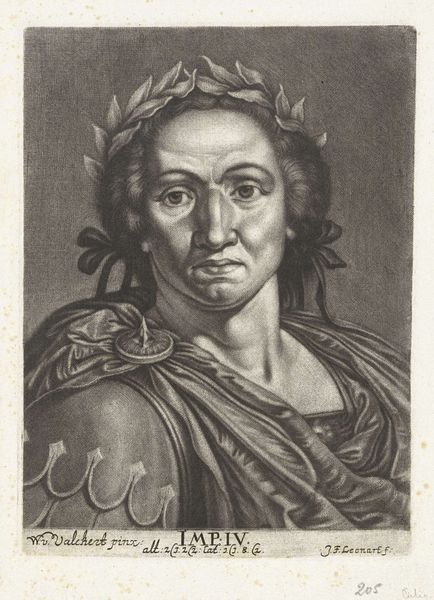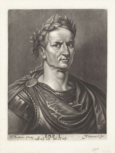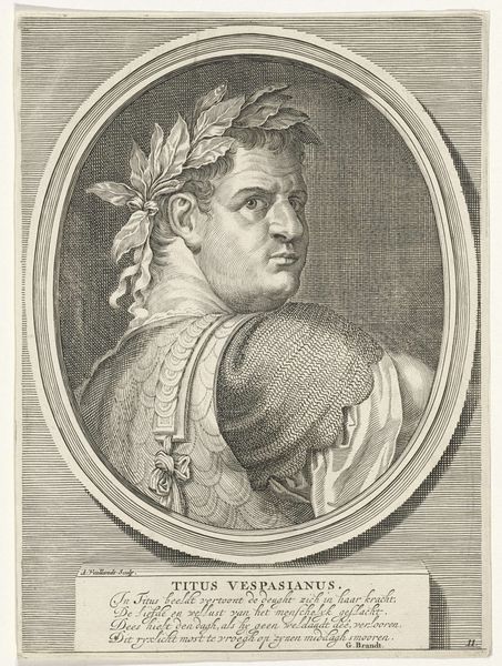 This is an engraving, a portrait of Emperor Vespasian, made by Johann Friedrich Leonard in the 17th century. The image is composed of very fine lines incised into a metal plate, probably copper. Ink would have been applied to the plate, then wiped off, leaving ink only in the carved lines. The plate would then be pressed onto paper, transferring the image. Look closely, and you can see the subtle gradations of tone achieved through the density and direction of these lines. This meticulous process demanded both technical skill and artistry, revealing a laborious method tied to the traditions of craftsmanship. Prints like this circulated widely, serving as a means of disseminating imagery and information. This reflects a growing commercial market, as well as the power of representation in shaping historical and cultural perceptions. It invites us to consider the social and economic contexts in which images are produced, distributed, and consumed. The material and method used to create such imagery are as important as the content and subject matter.