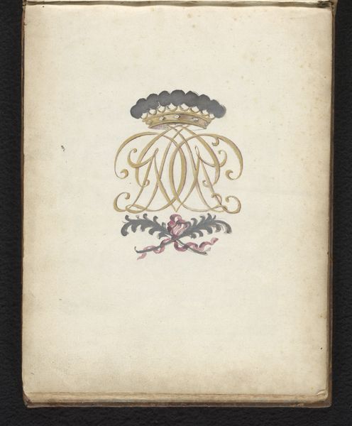 Editor: Here we have a drawing entitled "Liber amicorum Van Tienhoven-Hacke," created in 1891, attributed to Johannes Matthijs Lion. It appears to be watercolor and colored pencil on paper. It strikes me as incredibly delicate, almost ephemeral, in its composition. What stands out to you? Curator: Immediately, I am drawn to the interplay of form and void. Observe how the floral arrangement, the roses, the ribbon, do not merely occupy the space but rather define it through a precise configuration of line and color. Consider the subtle variations in the rendering of the leaves; they are not merely green, but a complex tapestry of hues that contribute to a sense of depth. Editor: So you're saying it's the relationship between all the individual parts that create the overall impact? Curator: Precisely. Note the structure of the ribbon. It bisects the floral arrangement. Its pale color palette contrasts sharply with the bloom of the rose, guiding the viewer’s gaze, thus establishing visual rhythm through contrasting colour and implied motion. Can you detect the inherent balance? Editor: Now that you point it out, I see it. There's definitely a conscious organization here, guiding the eye from the upper left to the lower right. Curator: Yes. Observe how each element exists in harmonious counterpoint to the others. It's a testament to the artist's understanding of visual syntax. Does analyzing these structural relations provide any fresh insights? Editor: It really helps me see the thoughtfulness behind the arrangement, more than just a pretty floral design. The deliberate composition speaks volumes. Curator: Indeed. And from understanding the internal composition of a work of art, you can begin to explore it as part of broader trends of representation, in terms of colour theory or perspective, for example. Editor: Thank you, that offers me a lot of clarity in thinking about the overall visual strategies at work here.