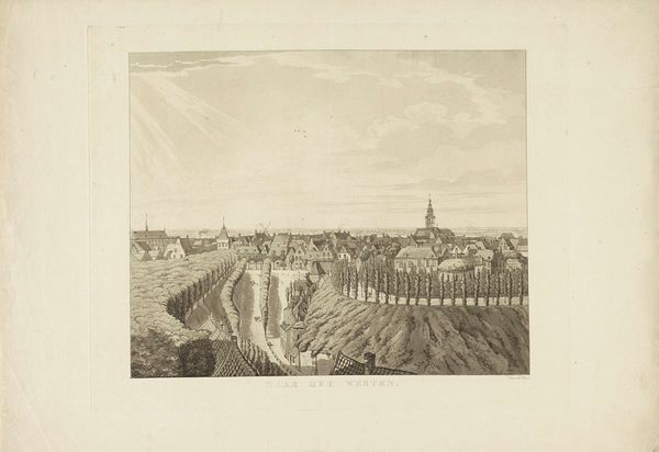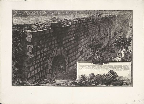 Curator: This etching, "Interior of the Colosseum" by Luigi Rossini, presents a fascinating view. The artist, born in 1790, captures the monument's grandeur. What strikes you initially? Editor: The stark contrasts and the sheer scale. It’s as if the Colosseum's very stones are breathing a sigh, a visual metaphor for the weight of history and the labor it embodies. Curator: Indeed. Rossini’s technique really emphasizes the materiality, almost like a ledger of the structure’s decay over time, reflecting the social narrative of its shifting purpose. Editor: And the composition guides the eye—the strong horizontals versus the crumbling verticals create a powerful tension, an internal dialogue about ruin. Curator: It really encourages us to consider not just what was built, but how it was built, with whose hands, and for what end. A poignant commentary on power. Editor: Absolutely, seeing the Colosseum through this lens adds depth. There's a complexity here that transcends mere architectural depiction.