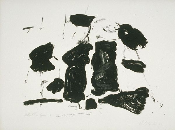 Curator: This untitled work by Philip Guston, whose dates are 1913 to 1980, is striking, isn’t it? I am immediately drawn to the stark contrast of black ink on the white paper. Editor: There's a chaotic energy here, a sense of restless discontent. I’m curious about the techniques used to apply the ink, were these deliberate strokes or spontaneous gestures? Curator: The printmaking process itself is key. Guston often embraced lithography for its immediacy, allowing for a direct transfer of his gestural style to the stone, then to paper. The materiality informs the final image. Editor: Exactly, and when we consider Guston’s later work, grappling with issues of race and violence, can we see hints of that turmoil in these aggressive, fragmented forms? Curator: Possibly. Although this work remains untitled, dating it and tracing the evolution of Guston’s printmaking can shed light on his artistic development and the social contexts that he was actively grappling with. Editor: Absolutely. It’s a reminder that even abstraction can be deeply intertwined with the artist's socio-political landscape. It all comes back to the artist and the impact of their life on the art. Curator: Indeed. Analyzing the material and the process helps us to better contextualize Guston’s work and understand the artist’s motivations. Editor: And for me, understanding his motivations will open new conversations about art and its role in our society.