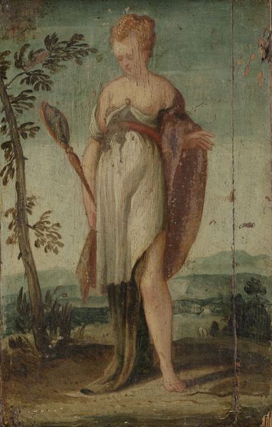 Ambrogio Bergognone painted this Saint Jerome, his gaunt figure set against a wilderness, to evoke themes of mortality and devotion. Jerome, a Doctor of the Church, is identified by his attribute: the lion, a symbol of his scholarship and the legend of his taming a wild beast. The skull at Jerome's feet is not merely a memento mori, but a symbol with deep roots. Consider its presence in ancient Roman art, where skulls served as reminders of life's transience. This motif resurfaces here, infused with Christian significance, urging reflection on eternal life. Note the stone in Jerome’s hand, with which he beats his chest in repentance, a motif echoing self-flagellation practices found in various religious traditions. It illustrates a universal yearning for redemption. These symbols engage viewers on a subconscious level. Their cyclical reappearance serves as a testament to our shared cultural memory, reminding us that the past is always present.