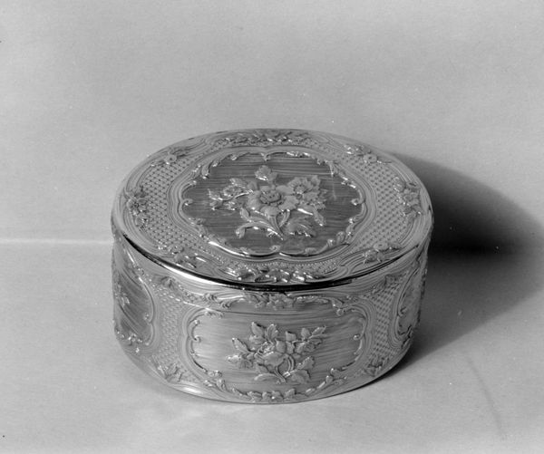 This is a porcelain tureen with a cover, crafted by the Höchst Manufactory, dating back to the 18th century. The eye is immediately drawn to the symmetrical composition and the pronounced horizontal axis, giving it a grounded, stable feel. Its smooth, white surface is playfully disrupted by three-dimensional floral elements. The handles, fashioned as robust, gnarled branches, offer a tactile contrast. Miniature roses adorn the body, their delicate forms standing out against the stark whiteness. These floral decorations are not merely ornamental; they suggest a structured play between nature and artifice. Looking closer, one notes how the floral motifs destabilize the conventional boundary between the functional object and the sculptural form. The tureen’s clean, simple shape serves as a canvas where the semiotics of flowers, usually associated with fragility and beauty, meet the robust demands of the culinary world. It’s a fascinating discourse on the relationship between form and function.