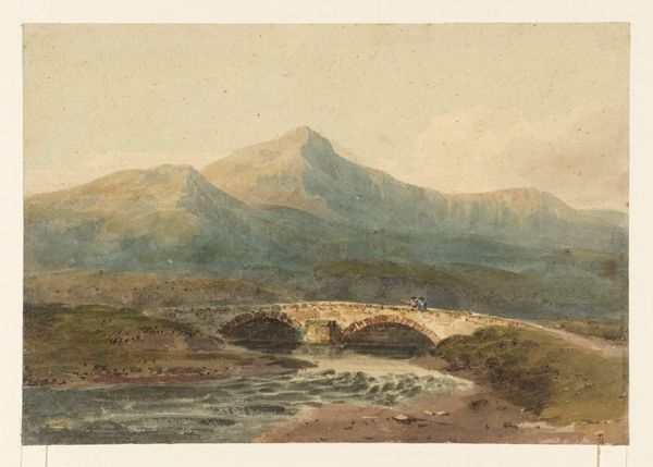 Joseph Mallord William Turner created this landscape painting, Tummel Bridge, Perthshire, using oil on canvas. The immediate impression is one of dramatic naturalism, achieved through a dynamic interplay of light and shadow, with broad brushstrokes that articulate the rugged terrain and turbulent sky. The bridge itself acts as a structural anchor, its classical form juxtaposed against the romantic wildness of the Scottish Highlands. Turner destabilizes traditional landscape painting by embedding it within the sublime, where the grandeur of nature evokes a sense of awe mixed with trepidation. His use of atmospheric perspective and broken color anticipates impressionism, yet remains deeply rooted in the Romantic era's fascination with nature’s power. Semiotically, the bridge serves not only as a physical structure but also as a sign of human connection, a cultural imposition on the natural landscape. The painting's materiality, particularly the texture created by Turner’s vigorous brushwork, underscores a tension between representation and abstraction. It invites us to consider how art continuously redefines the boundaries between nature, culture, and perception.