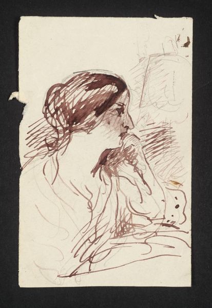 Editor: Here we have John Singer Sargent's "Self-Portrait in Profile," done with graphite. It has such an unfinished quality, like a fleeting glimpse. What do you make of it? Curator: It's like catching Sargent in a moment of reflection, isn't it? The hatching feels less about capturing likeness and more about conveying introspection. You get the impression he’s more interested in capturing a feeling. It's less about showing and more about suggesting. Editor: I hadn't thought about it that way. So, maybe the rough quality isn't a lack of finish, but rather a deliberate choice? Curator: Exactly! It's a bit like life, don't you think? Never really finished, always in progress. It also humanizes him, doesn't it? Makes a legend approachable. Editor: That's a great point. It's interesting how a simple sketch can be so revealing. Curator: Indeed. It's a dance between artist and subject... and, in this case, they're one and the same!