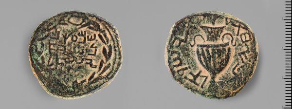 Curator: The Harvard Art Museums hold this intriguing artifact: an Anonymous Follis. Editor: It looks quite weathered and worn, almost like something pulled from the earth. Curator: Indeed. One side depicts an image of Christ. The other side is inscribed with text, likely religious in nature. This follis provides insight into the intersection of faith and daily life, where religious identity would have been expressed through currency. Editor: Absolutely, currency in this context wasn't merely economic, but a powerful symbol of imperial and religious authority. The widespread use of the coin facilitated the dissemination of religious imagery and reinforced the Church’s influence on society. Curator: Precisely, the image is so faint now, but the coin as a vessel for religious and cultural memory persists. Editor: Yes, even its worn state speaks volumes about its circulation and the values it carried.