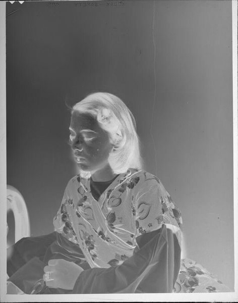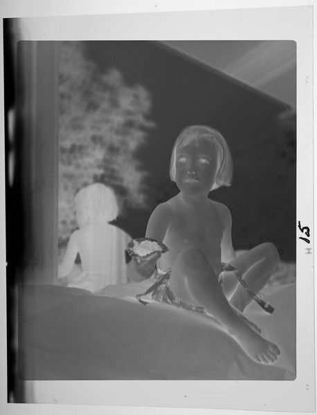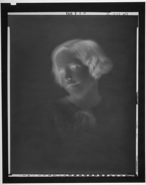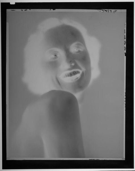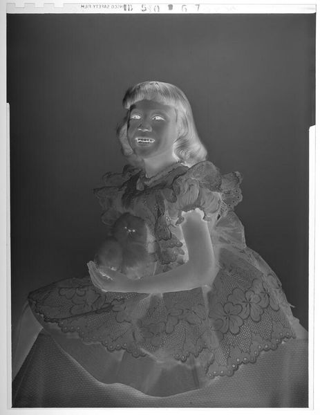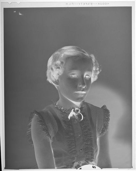 Editor: This is an untitled photograph by Lucian and Mary Brown, depicting a smiling girl. It's only about 4x3 inches. The high contrast gives it an eerie, almost otherworldly feel. What do you make of it? Curator: It’s funny you say eerie, because I see a memory struggling to surface. The negative space becomes a metaphor, a blank canvas upon which the viewer can project their own childhood recollections, or perhaps a collective memory of simpler times. Editor: So it's almost intentionally ambiguous? Curator: Exactly! The lack of context is the point, I think. And in that absence, we find a strange universality. What do you think that says about its artistic value? Editor: That's a really interesting perspective! I initially just saw the contrast, but now I see the potential for personal connection.