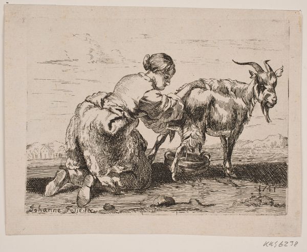 Curator: This sketch, rendered in pencil, offers a tranquil view of sheep. It's titled "Twee schapen en een lam" by Joseph Louis Leborne, dating to before 1841. What's your immediate reaction? Editor: It’s quiet, almost monastic. The softness of the pencil, the tight grouping of the animals, suggests a protective huddle. You can almost feel the texture of the wool. Curator: Sheep, throughout art history, often carry significant symbolic weight. They’re associated with innocence, gentleness, and in Christian iconography, represent the flock of the faithful, guided by a shepherd. Does that resonate here? Editor: Possibly, but I'm also drawn to the artist's hand. Look at the clear mark-making; each stroke meticulously applied to define form and texture. It speaks to a close observation, a real interest in capturing the animal’s materiality. What kind of pencil would have been used to create such varied light effects? Was it locally sourced? I would also want to know more about paper manufacturing at the time. Curator: I agree. Notice the use of light. Leborne has crafted a scene filled with quiet contemplation. But your focus brings to mind a different angle; the socio-economic aspect, which is important too. Sheep were not only symbolic figures, but also valuable resources. The wool, of course, fed the textile industry. The drawing then captures that in-between stage—the animal both as an emblem of peaceful rural life and a key component in the wider economic system. Editor: Precisely! This wasn’t just a random sketch; it's an artistic engagement with the foundational materials that fueled economies and sustained communities. Curator: Seeing how you view this image through a focus on craft brings another perspective, a focus on a social narrative that the images convey from their materiality. I’d initially thought more about its cultural meanings. Editor: It makes you consider the art’s creation in dialogue with not only the subject depicted but also material availability and production practices during Leborne's time. Curator: An important consideration that reframes our viewing of what at first sight might appear a docile landscape sketch. Thank you. Editor: And thank you for the illuminating insights into how we read symbols in visual culture.