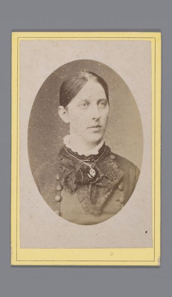 This is a photograph of a woman with a necklace, made by Louis Robert Werner, although the specific date remains unknown. The image itself is a window into the cultural norms of the time. Looking at the woman’s attire, her modest hairstyle, and the simple yet elegant necklace, we gain insight into the values and expectations placed upon women. This photograph, like many others from the period, was likely commissioned by the sitter and her family, and it's fascinating to consider the relationship between the sitter and the photographer. To fully understand the social context of this photograph, we might delve into archives of local newspapers and social registers. These sources can reveal details about the sitter’s social standing, family connections, and perhaps even her personal story, reminding us that art is not created in a vacuum, but is deeply embedded in the social fabric of its time.