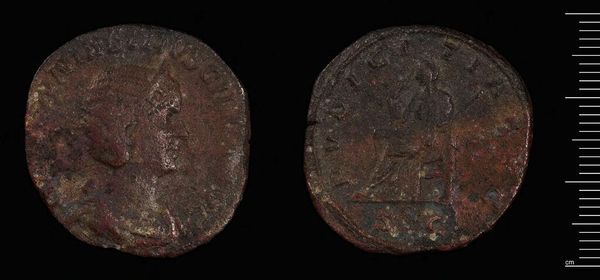 Editor: This is a bronze Follis of Maxentius from Ostia. It looks pretty worn, almost like a relic of a forgotten power. What can we learn from such a seemingly insignificant object? Curator: This coin, small as it is, speaks volumes about power, representation, and social control in late antiquity. Consider how Maxentius, a usurper, used coinage to legitimize his rule, carefully crafting his image for political gain. Editor: So, it's less about currency and more about propaganda? Curator: Exactly! These images were circulated widely, reinforcing a particular narrative and attempting to solidify his authority. What does it mean to see a ruler’s image so tarnished, so eroded by time? Does it reflect on the temporality of power itself? Editor: It's fascinating how something so small can reveal so much about a society's values and power structures. Thanks for opening my eyes to a new way of seeing history! Curator: My pleasure! Keep questioning whose stories are being told, and whose are being left out.