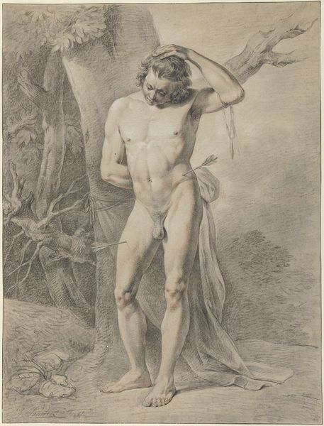 Curator: "The Dancing Faun, after the Antique," by John Singer Sargent. It's a charcoal drawing, quite large actually, that captures a sculpture… and boy, does it capture movement. What strikes you first? Editor: It's theatrical, almost grotesque. He's caught mid-motion, tongue out, a real sense of abandon. How do you interpret that energy Sargent's trying to convey? Curator: Well, Sargent was always fascinated by capturing fleeting moments, wasn't he? Maybe he saw something in the Faun's unrestrained joy that resonated. Think of it as Sargent’s ode to pure, unadulterated expression. It's a study, yes, but also a celebration! Don't you think? Editor: A celebration of… letting go? I can see that. It's less about technical skill and more about capturing a raw feeling. Curator: Precisely! It's Sargent diving headfirst into feeling. Makes you want to dance, doesn't it? Editor: It does! I'll definitely remember this piece and Sargent's vision of movement.
