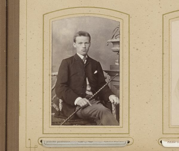 This is "Portret van een man, staand bij een balustrade" (Portrait of a man, standing by a balustrade), a photograph by the IJpma Brothers. Though undated, this image evokes the formal studio portraits popular at the turn of the 20th century. Note the trappings of middle-class masculinity: the dark suit, pocket square, and poised stance. These details project an image of respectability and aspiration. But look closer—there’s a subtle tension. The man’s slightly averted gaze hints at a more complex interior life, challenging the stoic ideal. Consider how photography democratized portraiture, allowing more people to participate in shaping their public identities. This image, with its staging and careful composition, is both a personal record and a performance of self. It invites us to reflect on the boundaries between private emotions and public presentation, especially for men navigating societal expectations.