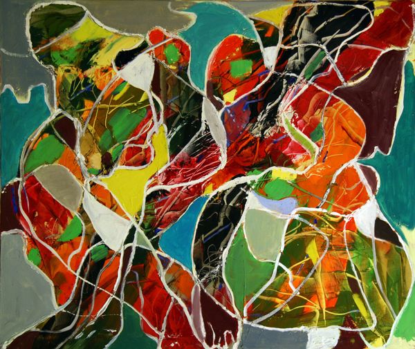 Samia Halaby painted "For Jean Gordon", an oil on canvas, with shapes dancing in a vibrant chorus. The geometric forms are like ideograms; triangles suggest direction, and overlapping curves imply harmony. Consider how geometric abstraction evolves through time. Recall the Renaissance, where the triangle symbolized the Holy Trinity, and the circle, divine perfection. In Wassily Kandinsky's work we see triangles and circles expressing spiritual states, a bridge to pure emotion. The shapes in Halaby's canvas evoke a visual language, where each form carries symbolic and emotional weight. Much like ancient symbols, these forms awaken a response deep in our collective memory, hinting at hidden connections that linger long after we've turned away. In Halaby's symphony of shapes, we find both ancient echoes and a modern rhythm.