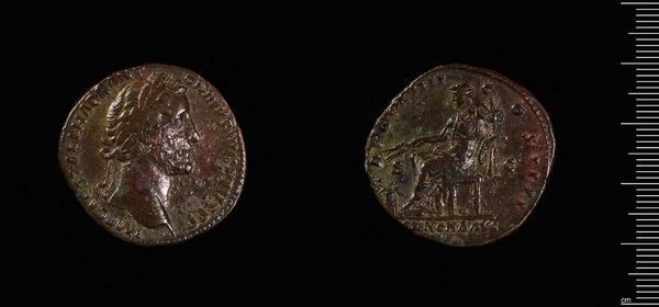 Curator: This coin, a follis of Galerius from Alexandria, presents a fascinating glimpse into the visual rhetoric of imperial power. Its materiality speaks volumes. Editor: It looks so worn, like it has traveled through centuries of pockets and purses, carrying the weight of Roman power. Curator: Exactly. Minted during a period of significant political restructuring, the coin depicts Galerius, highlighting his authority within the Tetrarchy. How interesting that coinage was used to enforce a kind of political messaging! Editor: The imagery, then, serves a propagandistic function? One side shows Galerius's profile, while the other seems to portray a standing figure. Curator: Indeed. The standing figure may be a representation of a deity or perhaps another symbol of imperial authority. Consider how these images legitimized Galerius's rule within a diverse empire. Editor: It’s compelling to think about how this small object connected diverse populations through a shared visual language of power and belief. It really makes me wonder what messages we are putting into our own currency today. Curator: Absolutely, it prompts us to reflect on the legacies of power and representation that continue to shape our world. Editor: A tiny window into an empire, and a mirror for our own times.