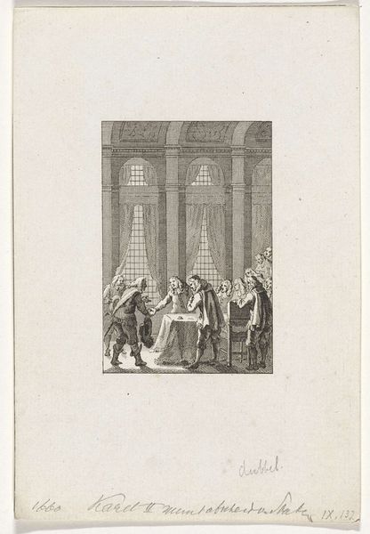 Ludwig Gottlieb Portman made this print in 1795, showing the reception of members of the National Assembly in the Assembly of Holland. It depicts a moment of political change in the Netherlands, a time when existing social norms were being challenged. In January 1795, French revolutionary troops invaded the Dutch Republic, leading to the Batavian Revolution. The old order was swept away and replaced by a new, more democratic system of government, the Batavian Republic. The print shows that those who were considered representatives of the people were being formally introduced to the Assembly of Holland. The image creates meaning through its depiction of this formal ceremony, the architectural setting, and the clothing of the figures. The handshake is a key element, symbolizing the transfer of power and authority from the old regime to the new. The print shows the social conditions of the late 18th century and the political movements that were transforming Europe. Historians use a range of resources, such as letters, diaries, newspapers, and official documents, to understand the social and institutional contexts in which art is made. By studying these sources, we can gain a deeper understanding of the meaning and significance of art as a product of its time.