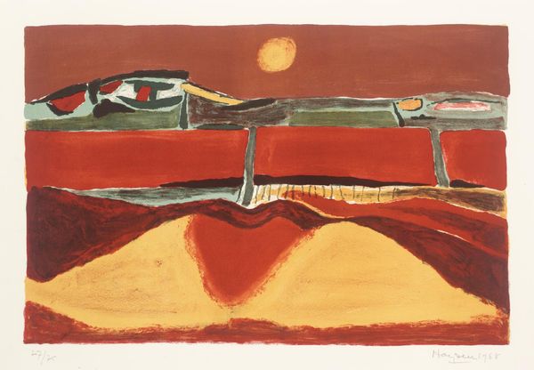 Editor: So, here we have Henri Hayden's "The Red Hill," its date is unknown, but it's held at the Tate. I'm really drawn to how the red contrasts with the muted blues and browns. What do you make of this landscape? Curator: It's almost primal, isn't it? Red, that colour of passion, of earth, dominating the scene. It feels like Hayden's digging into the very essence of the landscape, that visceral connection we have to the land. Does it evoke a particular place for you, or a feeling? Editor: More of a feeling, I think. A sort of raw energy. I was wondering, why not a green hill? Curator: Exactly! It's a choice, a deliberate distortion of reality to heighten the emotional impact. Perhaps it's about the heat of the earth, the fiery core beneath the surface. Or maybe it’s just that Hayden was feeling particularly bold that day! Editor: That makes so much sense! I'll never see a landscape the same way! Curator: And that's the magic, isn't it? Art cracks us open, lets the light in.