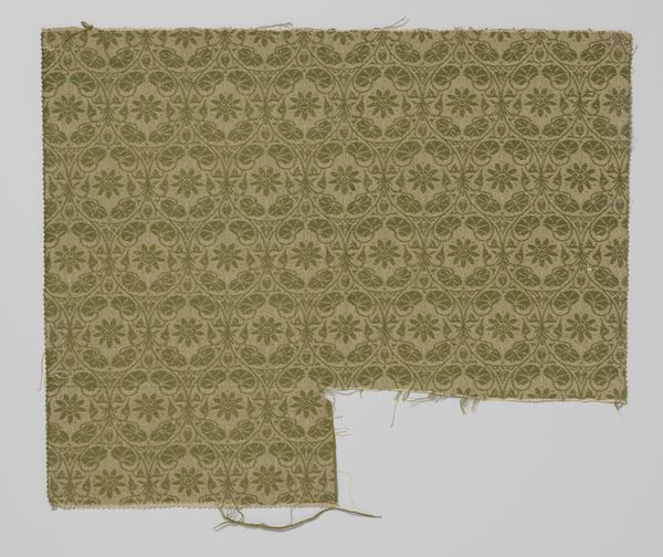 Theo Nieuwenhuis made this jacquard-woven fabric, a *Bespanningstof*, with a dark green pattern on a soft yellow ground, but we don’t know when. What grabs me about this piece is the intimacy of the woven process; how the artist has built up the pattern slowly, thread by thread. You can almost feel the artist’s hand guiding the shuttle back and forth. The dark green design, with its pointy oval shapes filled with leafy sprigs, contrasts with the gentle yellow underneath, creating a subtle tension. Imagine running your fingers across the surface – the slight variations in texture, the tiny imperfections in the weave. If you look closely, you’ll see how each leafy oval is subtly different, as if the weaver was improvising as they went along. It reminds me of some of the pattern paintings of the 70’s – think of Joyce Kozloff maybe – but rendered with a textile sensibility. Ultimately, it speaks to the beauty of handmade objects and the endless possibilities of artmaking.