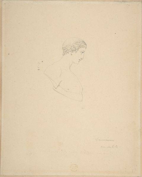 Vincenzo Camuccini sketched this classical male bust in profile with graphite. Camuccini, an Italian painter and draughtsman, was a leading figure in the Roman Neoclassical movement. Neoclassicism drew inspiration from the art and culture of ancient Greece and Rome. Looking at this bust, the formal clarity, idealized features, and emphasis on reason and order are typical of the Neoclassical style. This interest in antiquity wasn't merely aesthetic. It reflected the political and social values of the Enlightenment. The classical world was seen as a model of republican virtue and democratic ideals. Artists like Camuccini used classical imagery to comment on the social structures of their own time, often critiquing the decadence and excess of the aristocracy. To fully understand this drawing, we need to research the artistic institutions of the time, such as the academies that shaped artistic training. Delving into the social and political context will allow us to appreciate its role in the broader cultural landscape.