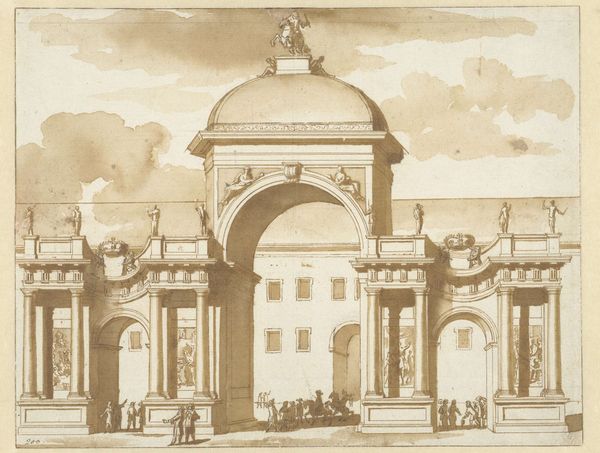 Louis Joseph Le Lorrain made this print in 1745, depicting the elaborate structure built to celebrate King Charles' return to Naples. More than just decoration, these temporary monuments were carefully designed to communicate political power. Look at the scale and classical architecture; this wasn't just a party, it was a statement. In 18th-century Naples, still under Bourbon rule, visual displays were crucial in shaping public opinion. The triumphal arch, loaded with classical references, links Charles to the glory of past empires, legitimizing his reign. The imagery would have been understood by those in positions of power, reinforcing existing hierarchies. Understanding this print means looking at the political and cultural context of Naples. Contemporary accounts, architectural studies, and records of courtly life would all shed light on the message Le Lorrain was trying to convey. This helps us to understand the power of art as a tool for shaping social and political life.