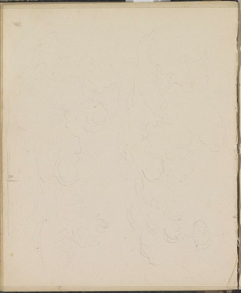 Curator: This piece, "Stengel met bloemknoppen" by Antoon Derkinderen, created sometime between 1889 and 1894, offers a delicate study in pencil on paper. Editor: My first impression is of a certain fragility. The lines are so light, almost tentative, conveying a sense of ephemerality. It feels like a whisper of nature rather than a bold statement. Curator: Precisely. Looking through a contemporary lens, it's interesting to consider how the drawing intersects with the prevalent artistic debates around naturalism and abstraction. Derkinderen uses the plant form – the stems and buds – as a starting point, yet the abstraction pulls us towards questioning the representational aspects of his identity as an artist and his political context. How does he, through the soft impressions of botanical matter, address the issues facing the art world at the turn of the century? Editor: That's a compelling perspective. In the context of late 19th-century artistic production, the choice of subject and the execution reflect, perhaps, an anxiety regarding art's role in a rapidly industrializing world. There's a deliberate sketchiness, resisting photographic realism, almost turning away from grandiose salon painting. Curator: I agree. It makes us question the grand narratives surrounding identity. Derkinderen creates a study that avoids explicit politics and narrative drama, offering a quiet observation of nature's subtle process of budding. His personal journey through the work is perhaps mirroring societal transition and tensions, particularly as society navigated modern art styles. Editor: It is fascinating to interpret. The light touch mirrors not only the flower, but Derkinderen’s social touch. It shows awareness. Curator: It invites us to think about the political choices of even the seemingly apolitical artist. Editor: Well said. It reminds me that seemingly simple works often have great nuance and many stories to tell when you consider where it sits within social, cultural, and political dynamics. Curator: Absolutely, understanding that these fragile drawings hold more strength through political understanding, and societal awareness than initially conceived.