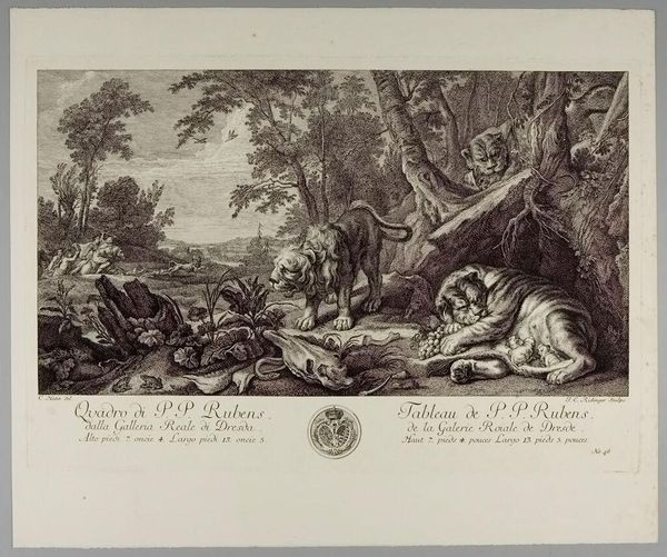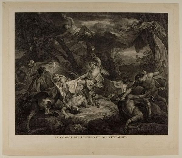 Curator: Gabriel Smith, active in the late 18th century, created this print titled "Boar Hunting," housed at the Harvard Art Museums. It depicts a rather violent scene. Editor: Yes, a brutal, chaotic mass of dogs and a boar, all rendered in stark blacks and whites. You can practically feel the tension in the etched lines. Curator: The printmaking process itself—the labor of etching and engraving—speaks to the commodification of such scenes for a specific audience. Hunting as a leisure pursuit for the elite. Editor: Exactly. Prints like this circulated widely, reinforcing aristocratic ideals and the power dynamics inherent in land ownership and the control of resources. Curator: And the paper itself, its weave and texture, would have added another layer of tactile experience for the viewer, a sort of luxury item in its own right. Editor: Absolutely, it's a glimpse into the visual culture that sustained a very particular societal structure. The print provided both access and endorsement. Curator: I'm fascinated by the way the artist worked to capture the raw energy through meticulous detail, such labor! Editor: Considering its social context certainly enhances my appreciation for the work.