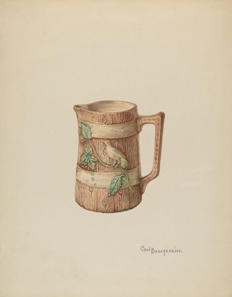 This drawing of a pitcher, by Yolande Delasser, is made from colored pencil on paper. It's like Delasser is gently coaxing the form out of the page, isn’t it? Look at how she uses the colored pencil, layering and hatching to build up the form, like a sculptor adding clay. The texture feels so tactile, almost as if you could reach out and feel the grain of the wood. Those delicate strokes, how they play with light and shadow. It gives the object a certain weightiness and depth. See that dark line near the base? It grounds the pitcher, and it also pops against the lighter tones of the wood. In some ways, it reminds me of Morandi and how he used simple objects to study light and form. Art is like a conversation across time, a way of seeing and experiencing the world that keeps evolving, resisting easy answers.