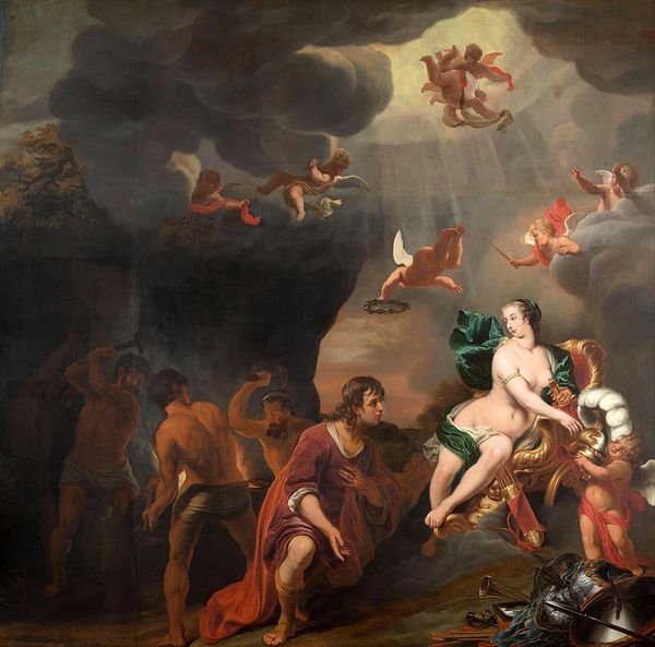 Jan de Baen painted this oil on canvas, “The Apotheosis of Cornelis de Witt, with the Dutch Raid on the Medway in the background,” sometime in the late 17th century. It’s hard to look at this painting without considering the fraught political climate of the Dutch Golden Age, marked by intense power struggles and violence. Cornelis de Witt was a key political figure who, along with his brother Johan, was brutally murdered by a mob in 1672. De Baen attempts to immortalize de Witt, setting him amongst classical figures with the Dutch Raid on the Medway, a major naval victory, displayed in the background. But this heroic portrayal feels unsettling given the brutal reality of de Witt’s demise. The painting invites us to reflect on the narratives we construct around power and the uncomfortable tension between idealized representations and lived experience.