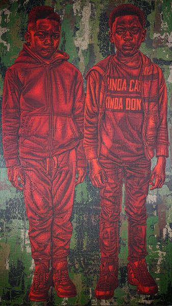 Alfred Conteh created the artwork DJ and Tay, without a specified date, as a portrayal of contemporary identity. In this double portrait, Conteh presents two young black figures set against a backdrop of vivid red, their figures rendered in cool blue and black tones. Conteh’s work often delves into the complexities of race, identity, and social issues within the African American community, rooted in his experiences. In ‘DJ and Tay,’ the subjects are dressed in contemporary streetwear, a visual marker of youth culture and identity. Their expressions are guarded, inviting questions about vulnerability, resilience, and representation. How do these young men navigate the world, and how does the world perceive them? Conteh’s portraits create an emotional bridge between the viewer and the individuals depicted, fostering empathy and understanding. The rawness of the textures and the intensity of the colors speak to the powerful realities shaped by social structures. Through this piece, Conteh encourages us to reflect on the narratives we construct around identity.
